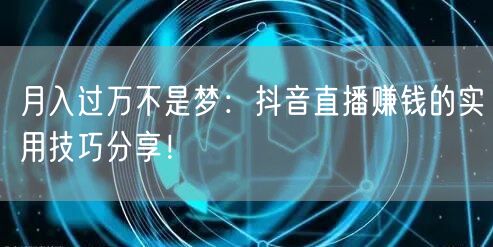 月入过万不是梦:抖音直播赚钱的实用技巧分享!