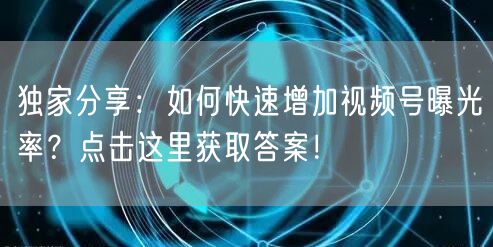 独家分享:如何快速增加视频号曝光率?点击这里获取答案!