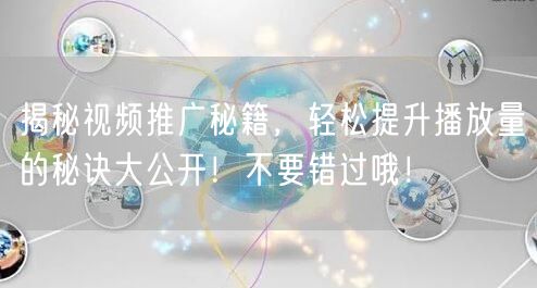 揭秘视频推广秘籍,轻松提升播放量的秘诀大公开!不要错过哦!