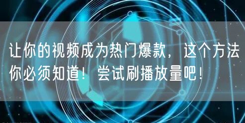 让你的视频成为热门爆款,这个方法你必须知道!尝试刷播放量吧!