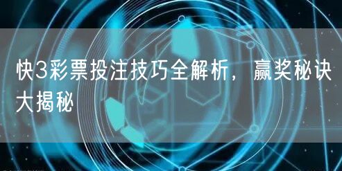 掌握快3彩票的制胜技巧,轻松成为大奖得主!本文为你揭秘中奖秘诀,运用独特的策略和技巧,助你轻松在快3彩票中脱颖而出。