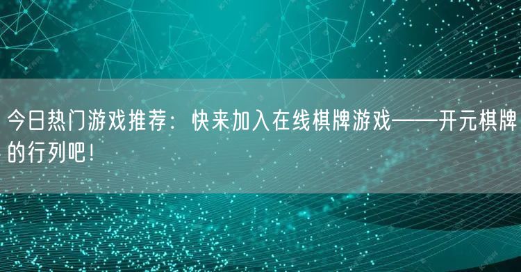 今日热门游戏推荐:快来加入在线棋牌游戏——开元棋牌的行列吧!